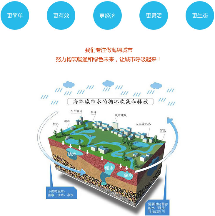 海绵城市是指城市能够像海绵一样,在适应环境变化和应对自然灾害等方面具有良好的“弹性”,下雨时吸水、蓄水、渗水、净水,需要时将蓄存的水“释放”并加以利用。海绵城市建设应遵循生态优先等原则,将自然途径与人工措施相结合,在确保城市排水防涝安全的前提下,最大限度地实现雨水在城市区域的积存、渗透和净化,促进雨水资源的利用和生态环境保护。建设“海绵城市”并不是推倒重来,取代传统的排水系统,而是对传统排水系统的一种“减负”和补充,最大程度地发挥城市本身的作用。在海绵城市建设过程中,应统筹自然降水、地表水和地下水的系统性,协调给水、排水等水循环利用各环节,并考虑其复杂性和长期性。 2015年4月2日晚间,根据财政部网站消息,海绵城市建设试点城市名单正式公布。根据地区得分,排名在前16位的城市分别是(按行政区划序列排列):迁安、白城、镇江、嘉兴、池州、厦门、萍乡、济南、鹤壁、武汉、常德、南宁、重庆、遂宁、贵安新区和西咸新区。国家住建部6月10日下发文件把三亚列入城市“双修”、地下综合管廊和海绵城市的试点城市。